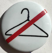 It's time to bring back the wordless, iconic button against a return to illegal abortion. The coat hanger was a grim graphic symbol in the 1970s for the movement to keep abortion safe and legal. A generation of young people today may not know the meaning of the coat hanger with the red slash across it, or know what it means. Now that the rightwing Supreme Court has gotten rid of women's right to safe, legal abortion in the U.S., this message is more important now than ever. Everyone thought the 1973 Roe vs. Wade decision protecting abortion rights was a "settled law" but it really wasn't. Under a far-right Supreme Court, we can't take anything for granted. These are from our metal lithographed print run in the 1990s: $1.00 each while supply lasts. Metal lithograhed buttons are no longer made anywhere. The last manufacturer, Adco Lirho in Chicago, closed in 2018. The era of those inexpensive, one-piece buttons printed directly on metal is gone forever, just like other now obsolete, but once essential things (carbon paper, typewriters, VHS video cassettes and players/recorders). We cannot let the right to safe, legal abortion become forever gone. Resist and challenge the growing movement toward theocracy and fascism in the U.S.